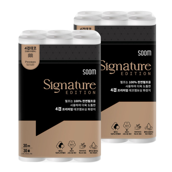 Soom 숨 시그니처 에디션 블랙 천연펄프 두루마리 화장지 휴지 4겹 30M 30롤 2팩
